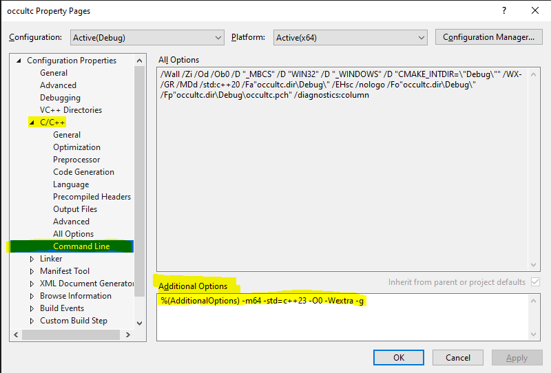 Next, go to C/C++ then Command Line and you should see a field called Additional Options just delete everything in there, and click apply.