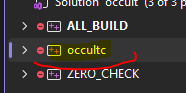 Once it's opened, you should see Solution Explorer, now left-click occultc and then click Alt + Enter to get to the properties menu.